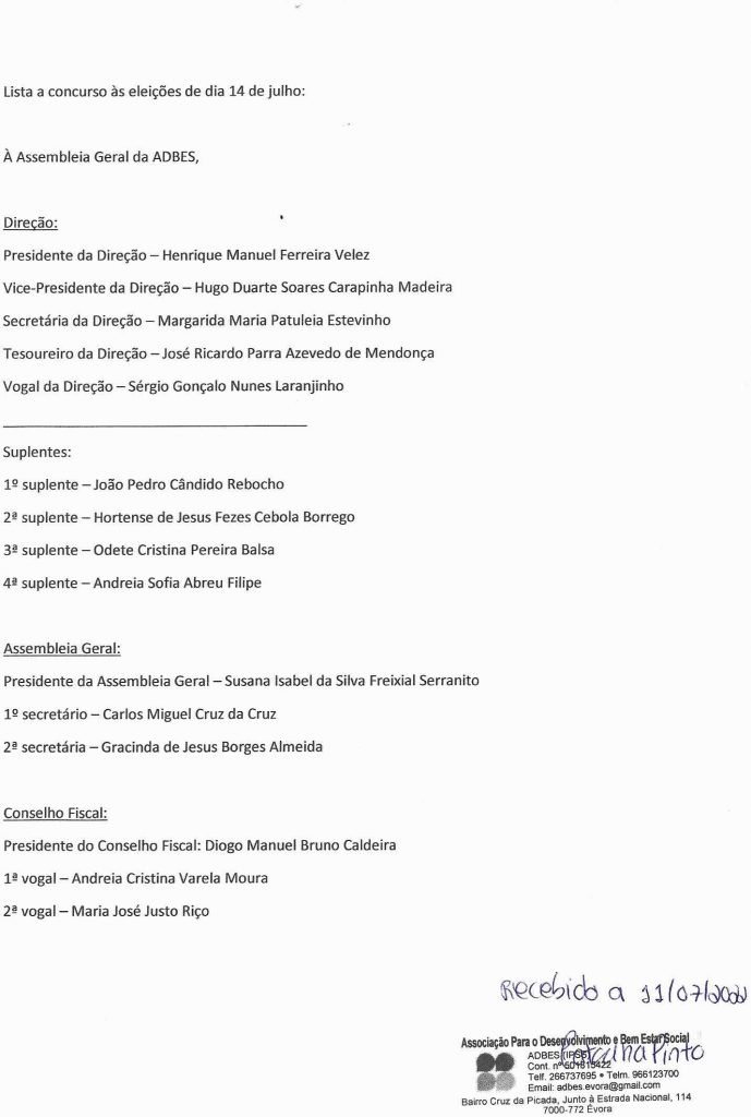 Lista a concurso às eleições de dia 14 de julho de 2022
