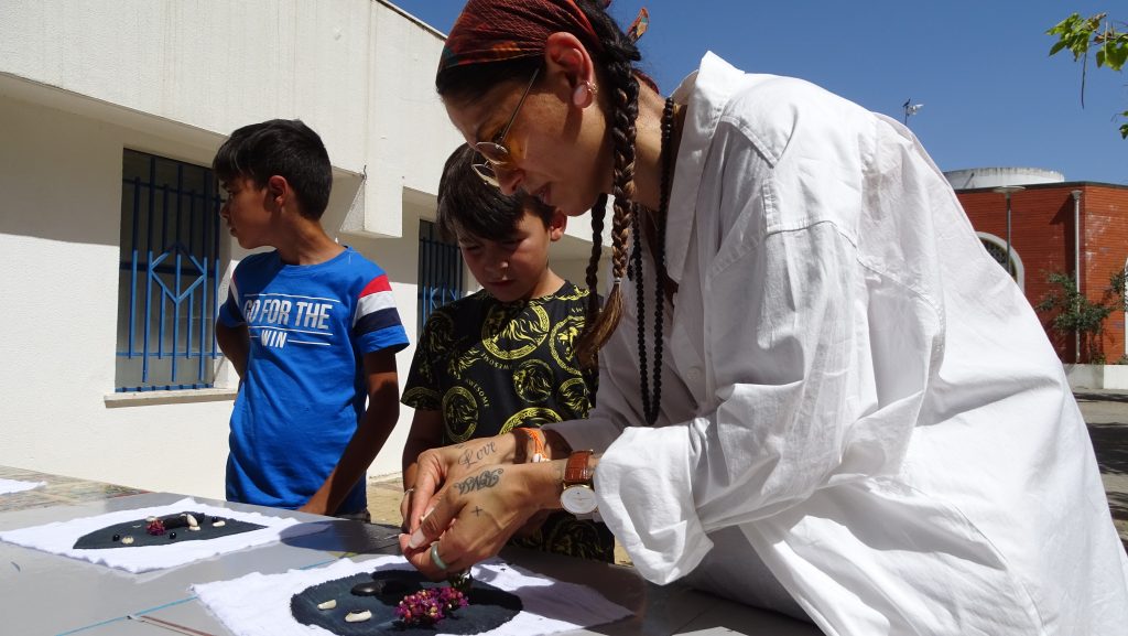 Na tarde ensolarada da última segunda-feira as crianças e adolescentes do ATL participaram numa atividade diferente e divertida, uma parceria com a ONG Évora NAU. A mesma, proporcionou uma experiência com a artista Silvi Naçi (n.1987, Albânia), que trabalha com fotografia, performance, vídeo, escultura, texto e instalação. A Naçi recebeu um duplo BFA em Belas Artes e Design Gráfico pela Suffolk University (2011) e um MFA em Fotografia e Mídia pelo California Institute of the Arts (2019). A artista foi ainda estagiária de curadoria no LIST Visual Arts Center do MIT (Cambridge, MA), e atuou como diretora assistente em Samsøñ (Boston, MA), diretora de arte na Liquid Art House (Boston, MA). Entre outros trabalhos e atividades.